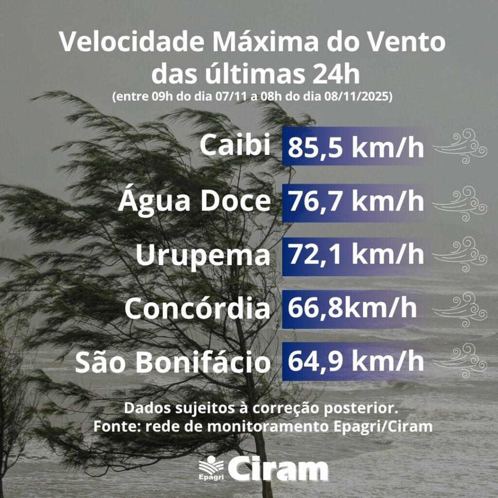 Durante a tarde e a noite da última sexta-feira (07/11), fortes temporais atingiram o estado, com intensas rajadas de vento, forte atividade elétrica (raios) e queda de granizo, associados a tempestades severas. A formação de um sistema frontal deu origem a um ciclone extratropical sobre o Sul do Brasil. Esse sistema resultou em rajadas de vento variando entre 64 e 86 km/h.