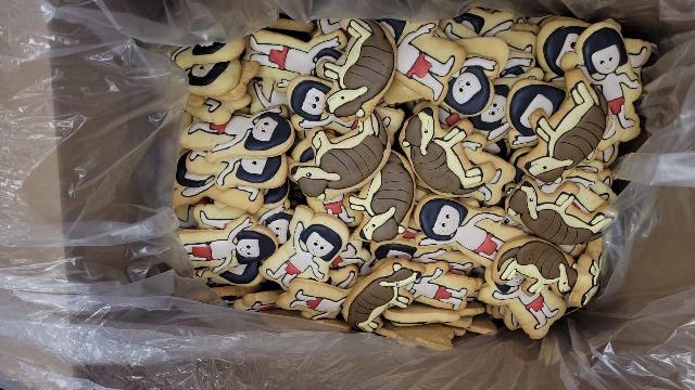 A produção artesanal dos biscoitos foi realizada em parceria com a empresa Blumenfeld, de São Bonifácio, que desenvolveu versões comestíveis dos personagens do livro.
