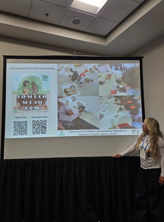 As ações de educação em solos de Santa Catarina também ganharam visibilidade internacional. Elas foram apresentadas no congresso CANVAS 2025, promovido pela Soil Science Society of America (SSSA), American Society of Agronomy (ASA) e Crop Science Society of America (CSSA), realizado em novembro de 2025, em Salt Lake City, Utah (EUA).