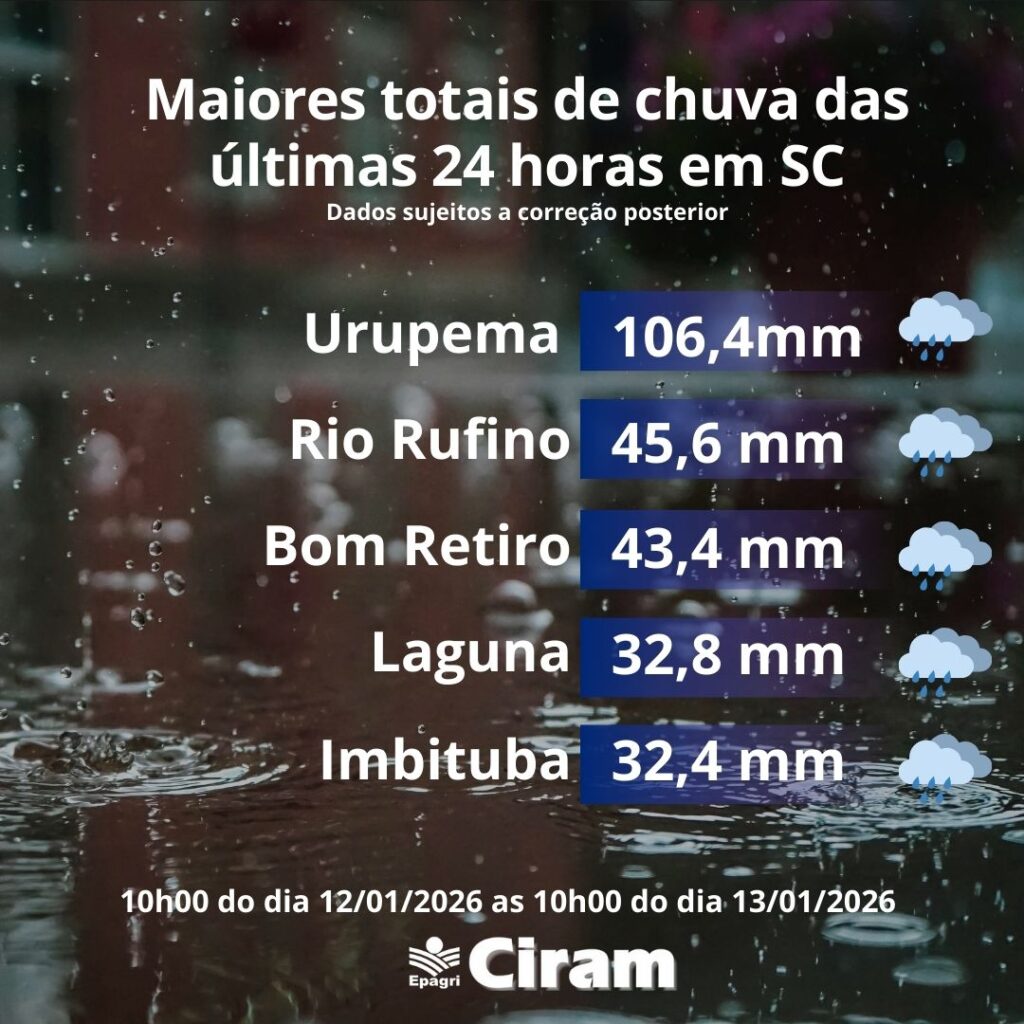 . Veja os registros na Rede de Estações monitoradas na Epagri/Ciram: Agroconnect.